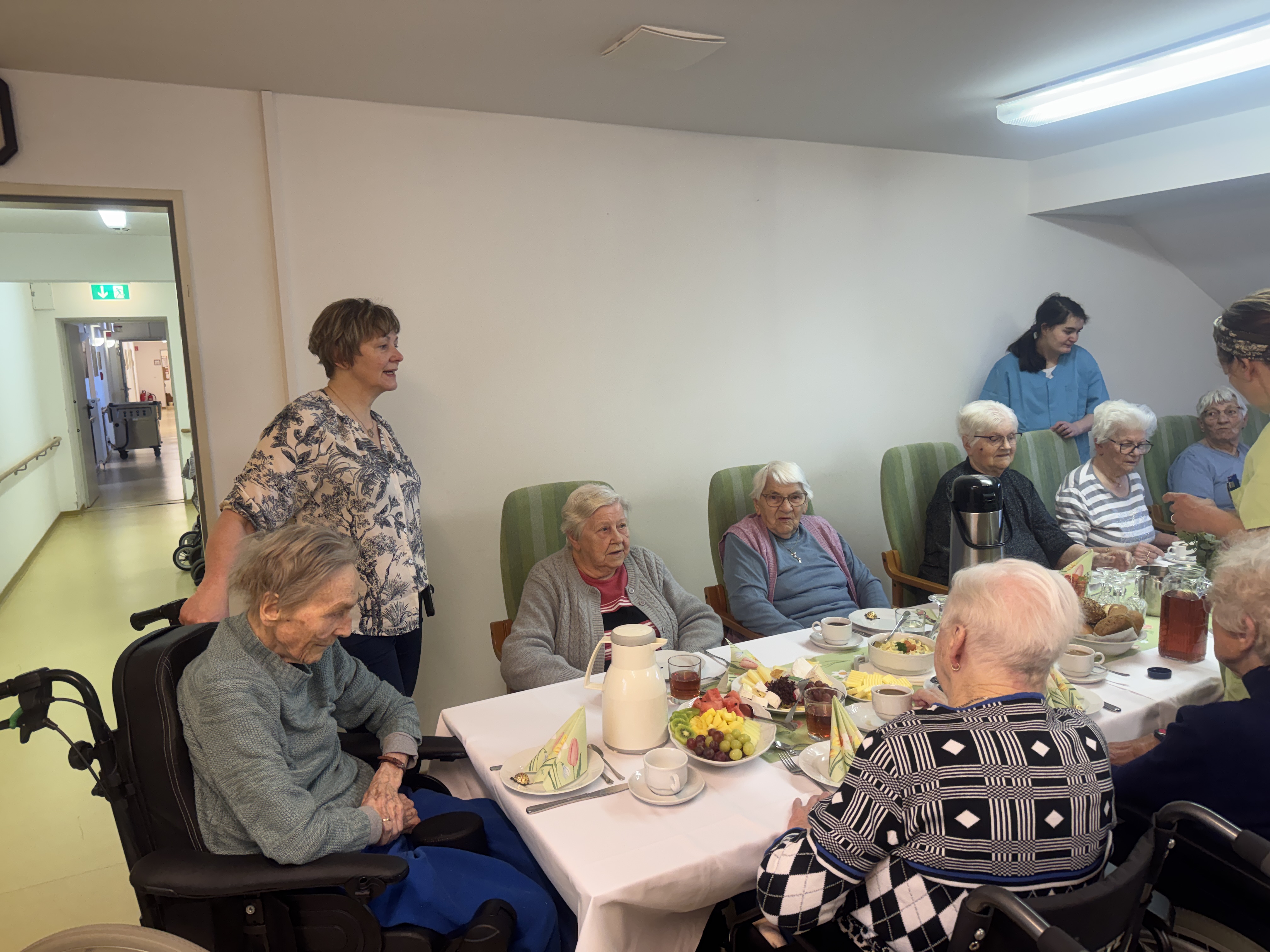 Die Mitarbeiterinnen und Mitarbeiter der Betreuung hatten mit viel Liebe alles vorbereitet und für einen festlichen Rahmen gesorgt. Die Einrichtungsleitung eröffnete das gemeinsame Frühstück mit einer kurzen, herzlichen Rede und begrüßte alle Anwesenden.