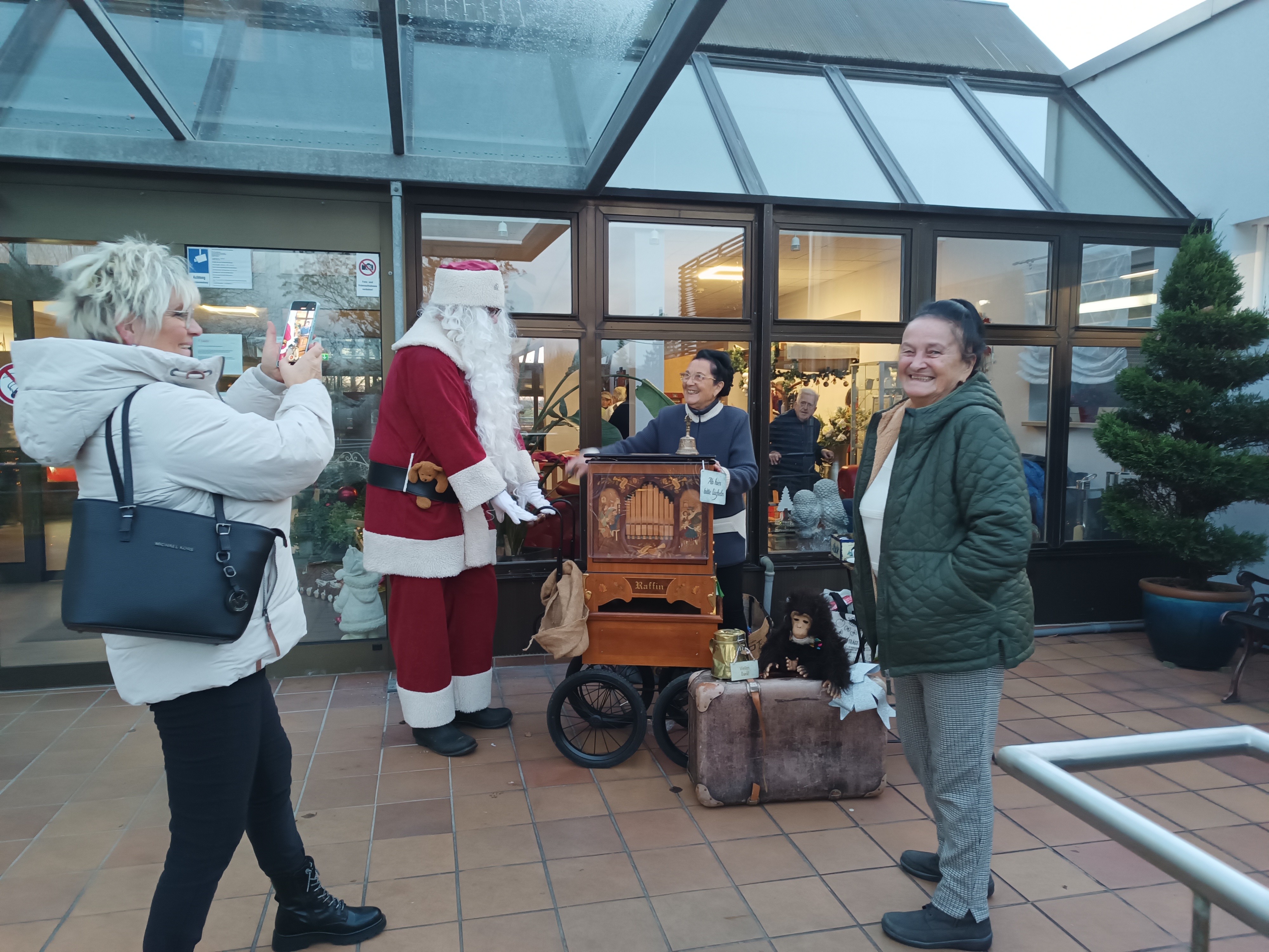 Die Betreuungskräfte und Mitarbeiter der Einrichtung hatten alle Hände voll zu tun – es wurden hunderte Waffeln gebacken und Bratwürste gegrillt, Kaffee und Glühwein ausgeschenkt, Popcorn gepoppt und Zuckerwatte gedreht. Das Foyer der Seniorenresidenz war tatsächlich lebendig geworden als sich halb Genthin einfand. Das Restaurant war bis auf den letzten Platz gefüllt, als die Tanzgruppe ihre Show präsentierte. Herr Fischer aus Parey spielte zwischenzeitlich für die Gäste Weihnachtslieder am Klavier. Ein Weihnachtsmann verteilte Geschenke an die „Artigen“ und sogar die Bürgermeisterin, Frau Turian, hatte es sich nicht nehmen lassen, der Einladung zu folgen.